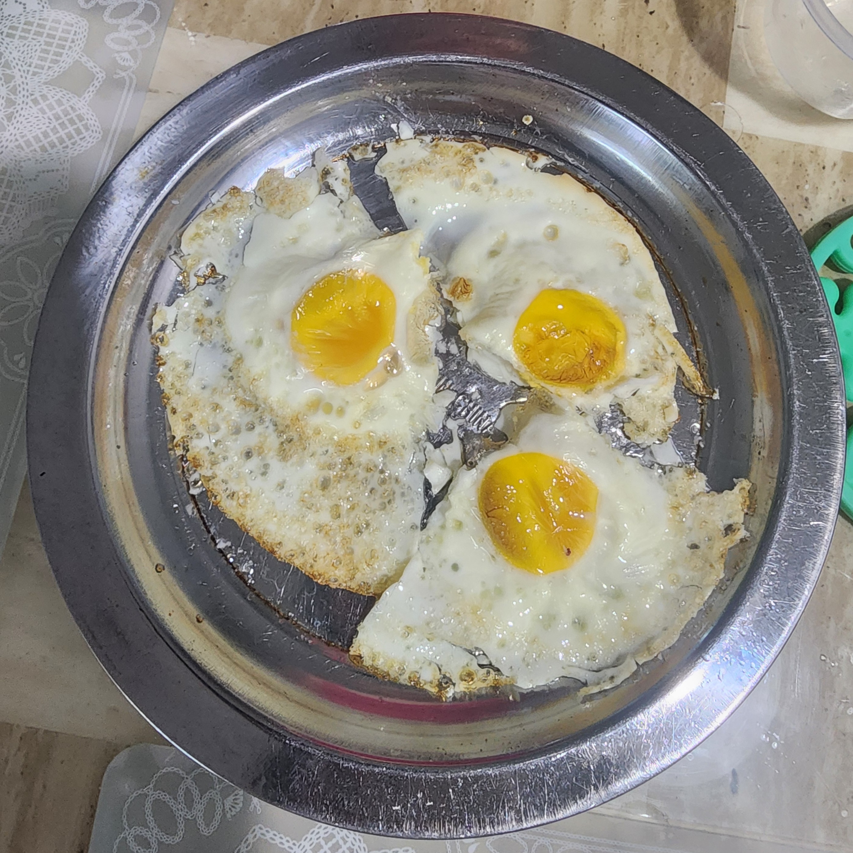 계란 3개 깨서 스테인리스 접시에 놓는다.